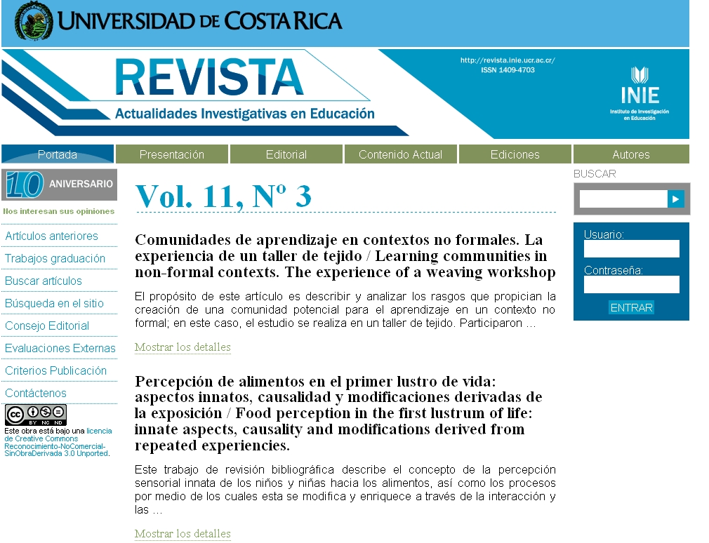 La Revista Electrónica "Actualidades Investigativas en Educación", es una publicación semestral de carácter académico, producida por el Instituto de Investigación en Educación (INIE), de la Universidad de Costa Rica; la cual se coloca a disposición de los docentes de esta universidad así como de la... (Ver más...)